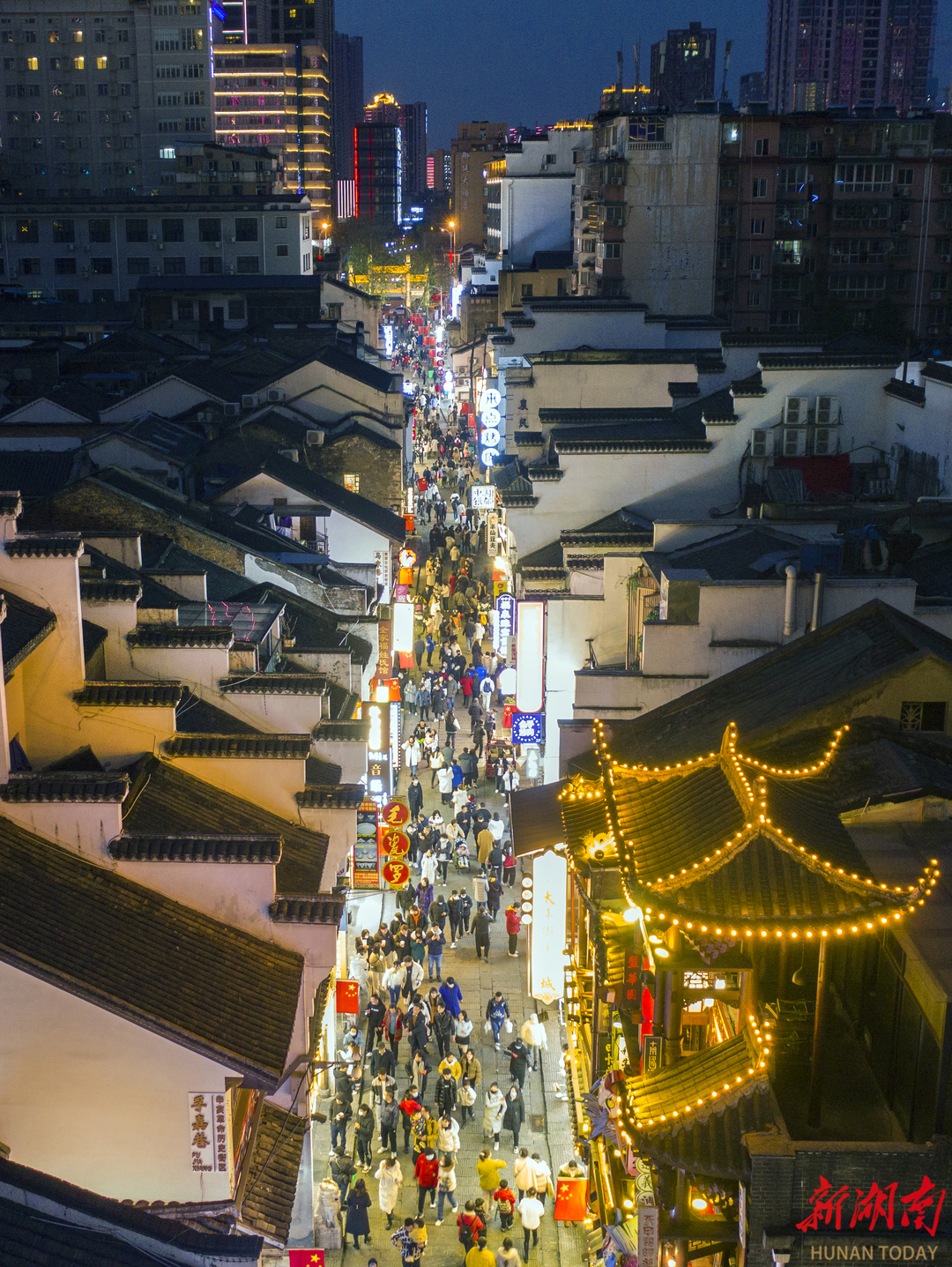 2月5日晚,长沙市太平老街人来人往,好不热闹。 湖南日报全媒体记者 李健 摄