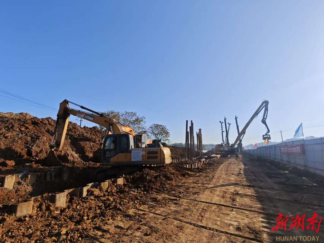 11月28日,韶山灌区南干渠白云隧洞施工现场,鲜红的党旗迎风飘扬。近50名工人头戴安全帽,有序施工作业。推土机的轰鸣声、技术人员的指令声,交织成一首激昂的“冬修交响曲”。