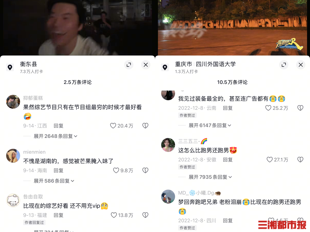 “果然综艺节目只有在节目组最穷的时候才最好看”“四十分钟的课听都不带听的,四十分钟的自制综艺我是一秒不落”“梦回《奔跑吧兄弟》,老粉泪崩,比现在的跑男还跑男”……不少网友都在相关视频评论区表达了对自制综艺的喜爱。除了想报名参加外,还有人给节目组出谋划策、替他们@品牌方招商。
