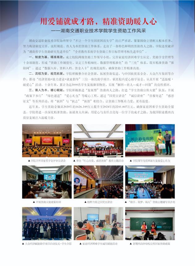近日,最新一期的《湖南学生资助》杂志发布。湖南交通职业技术学院学生资助工作纪实《用爱铺就成才路,精准资助暖人心》被选为封面专题刊登。