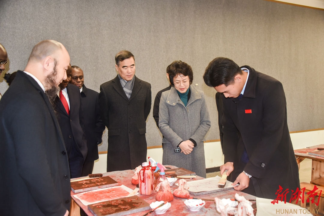 在湖南省宋旦汉字艺术博物馆,调研组在博物馆负责人宋旦的带领下参观汉字艺术展览,走进汉字工坊,了解场馆以汉字艺术为纽带,弘扬中华优秀传统文化、开展出海交流的实践成果。钱丽霞对其在推动中华优秀传统文化走向世界,增进海外侨胞与祖国的情感联结等方面的工作表示赞赏。