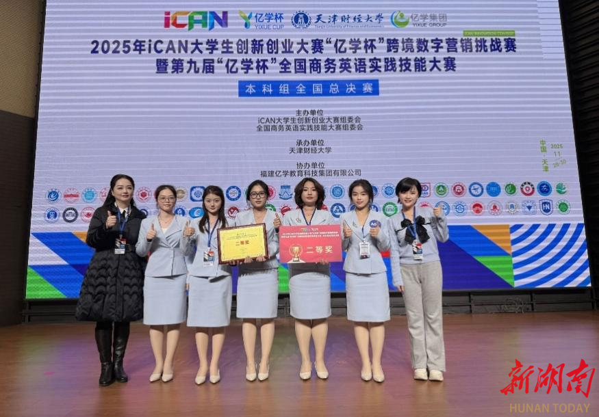 近日,2025年iCAN大学生创新创业大赛“亿学杯”跨境数字营销挑战赛全国总决赛暨第九届“亿学杯”全国商务英语实践技能大赛总决赛落幕,由湖南财政经济学院外国语学院邱高、法小鹰老师指导的学生代表队荣获全国总决赛二等奖。