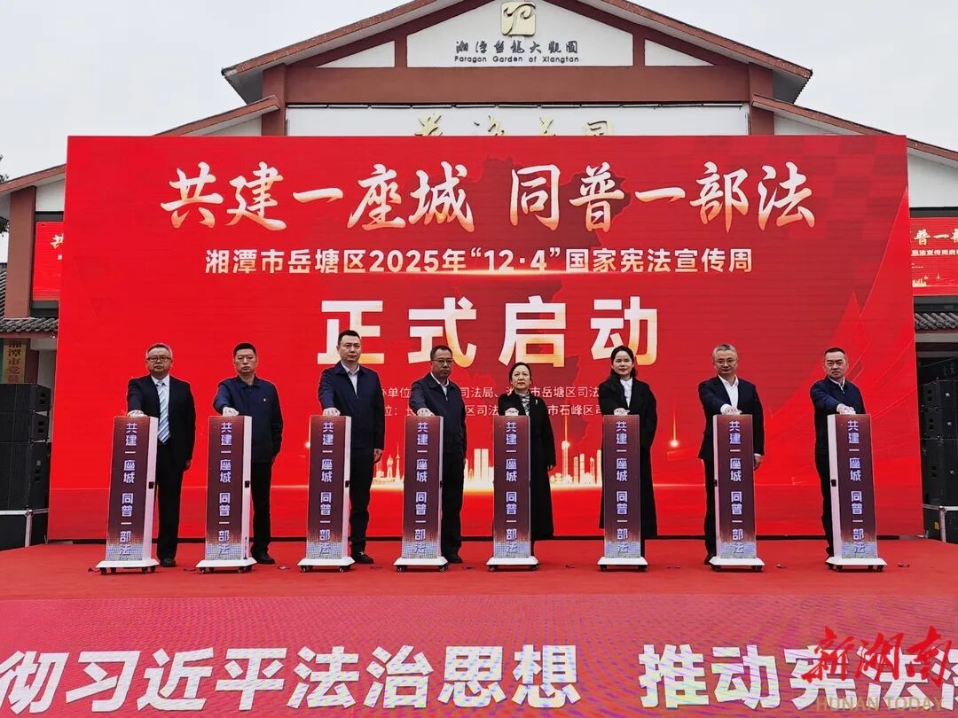 12月1日至7日是“宪法宣传周”,12月4日是国家宪法日。当天,以“共建一座城·同普一部法”为主题的国家宪法宣传周启动仪式,在湘潭盘龙大观园举行。此次活动在湘潭市司法局指导下,由湘潭市岳塘区、长沙市天心区、株洲市石峰区三地司法行政部门联合举办,标志着长株潭区域法治协同迈入新阶段,将为长株潭都市圈建设注入坚实的法治动能。