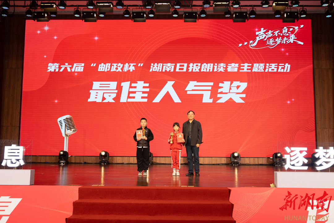 最终,经过激烈的网络评选与专家评审,第六届“邮政杯”湖南日报朗读者主题活动从数万个作品中评选出“最佳人气奖”2名、“金话筒奖”6名、“银话筒奖”12名、“铜话筒奖”24名、“杰出导师奖”135名、“杰出组织奖”54个。活动现场,省委宣传部、省关工委、省教育厅等部门与单位领导为获奖代表颁奖。