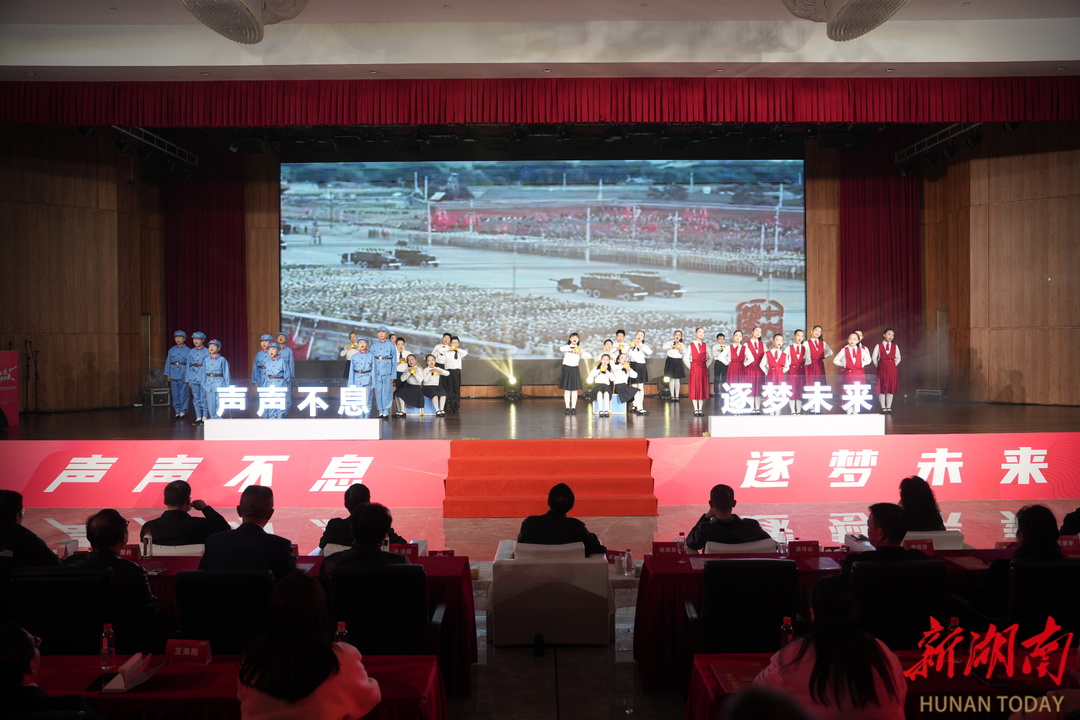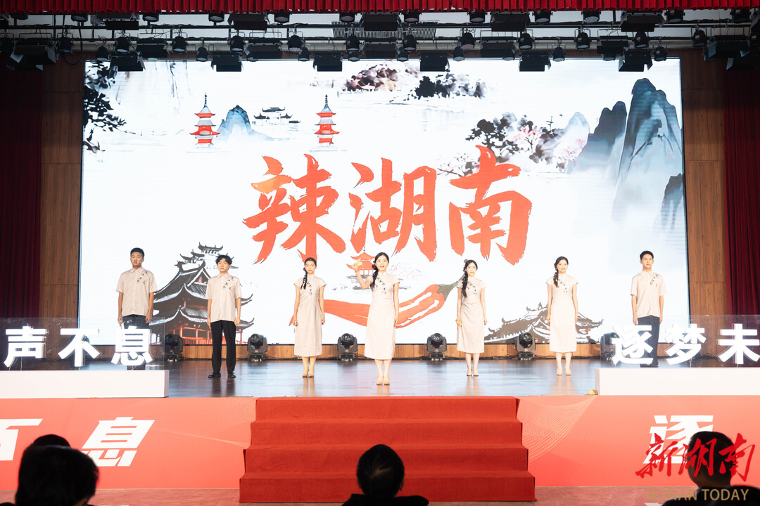 湖湘文化,火辣热情,孕育了敢为人先的精神。由湖南百纳星辉培训学校提供的舞蹈《奔跑的青春》为本次活动拉开序幕。活动现场,湖南科技大学学生以新颖的形式朗读《湖南日报》刊载的文章《辣湖南》,共同演绎出广大湖湘学子对家乡文化的深情眷恋与青春担当。长沙市明德金鹰学校带来的节目《这盛世如您所愿》,36名学子用稚嫩却真挚的声音诉说着对革命先辈的深切缅怀与对新时代美好生活的由衷赞美,现场观众无不为之动容,掌声经久不息。