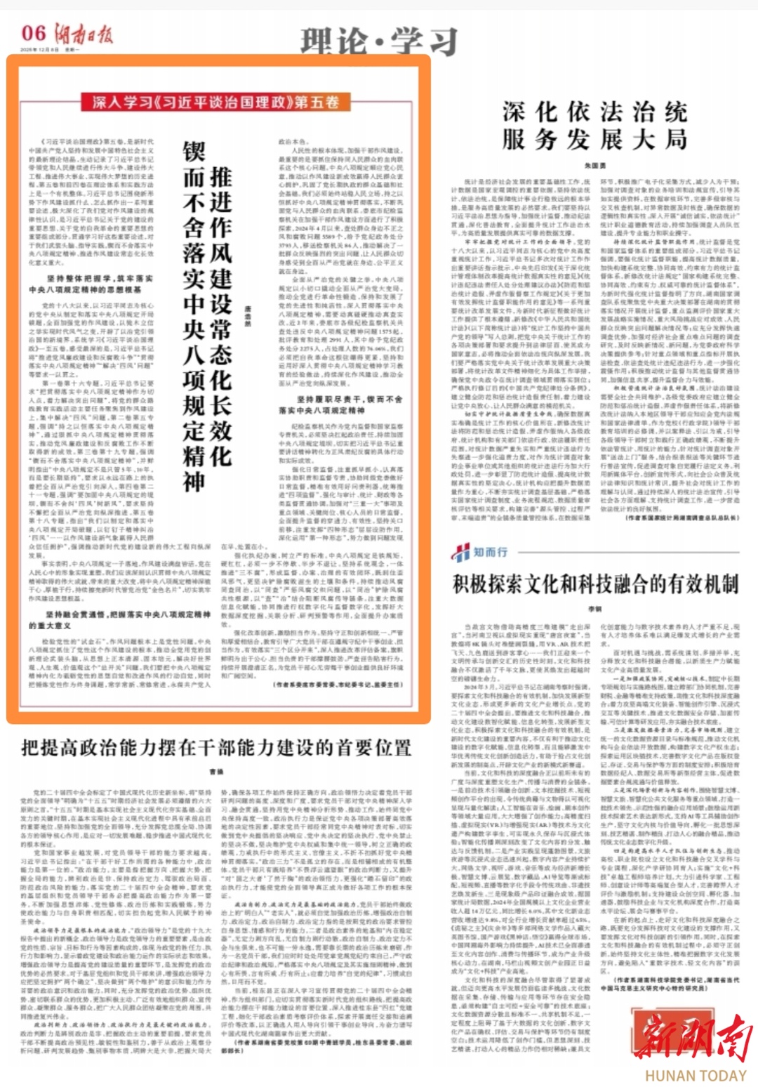 坚持履职尽责干,锲而不舍落实中央八项规定精神