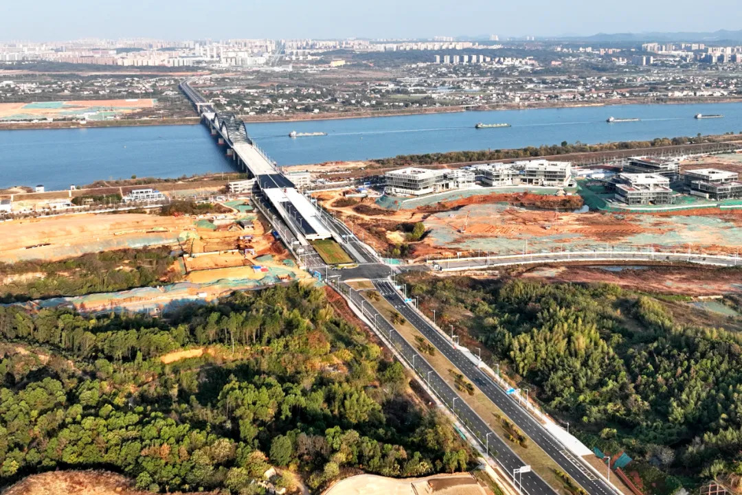 从空中俯瞰,湘江科学城的道路脉络已清晰可见,一张“南北畅达、东西贯通”的便捷路网正在加速成形,助推湘江科学城快速发展。
