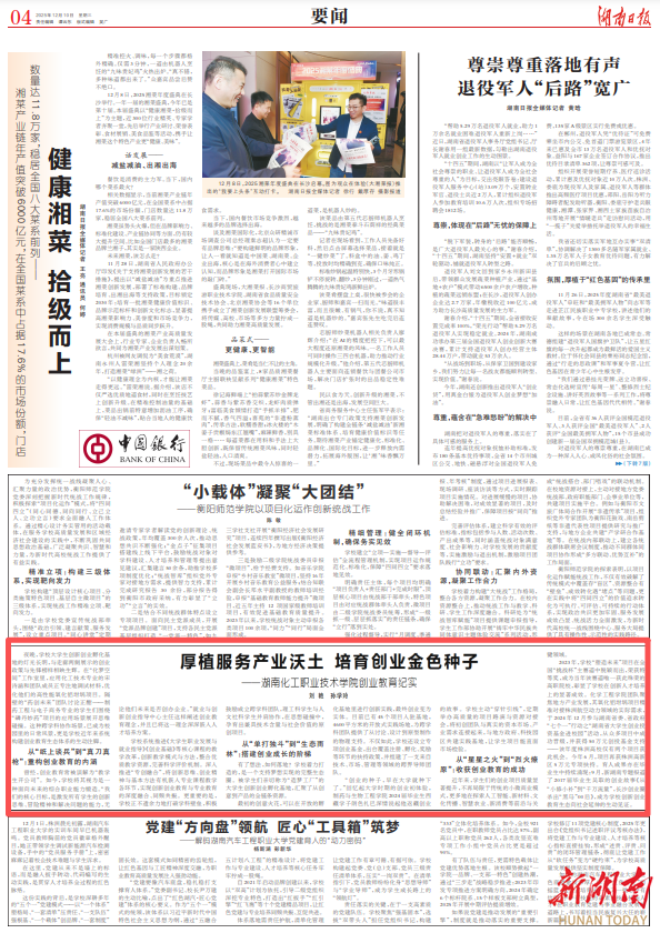 2023年,学校“塑造未来”项目在全国“挑战杯”主赛道中脱颖而出,荣获特等奖,成为当年该赛道唯一获此殊荣的高职院校,彰显了学校在创新人才培养上的显著成效。化学工程学院团队聚焦地方产业发展,其氧化铝坩埚项目精准对接株洲航空动力领域的实际需求,于2024年12月参与湖南省委、省政府“七个一”行动之“湖南省大学生创业投资基金进校园”活动,从众多项目中成功晋级,并获得50万元创投基金支持——该年度株洲高校仅有两个项目获此机会。今年6月,项目再获株洲高新区5万元专项扶持。育人成果亦在毕业生中持续涌现:9月,新湖南专题报道了2017届毕业生吴取的创业故事《从“小修小补”到“千万流量”,长沙创业圈杀出“黑马”00后》,成为学校创新创业教育生态向社会延伸的生动见证。
