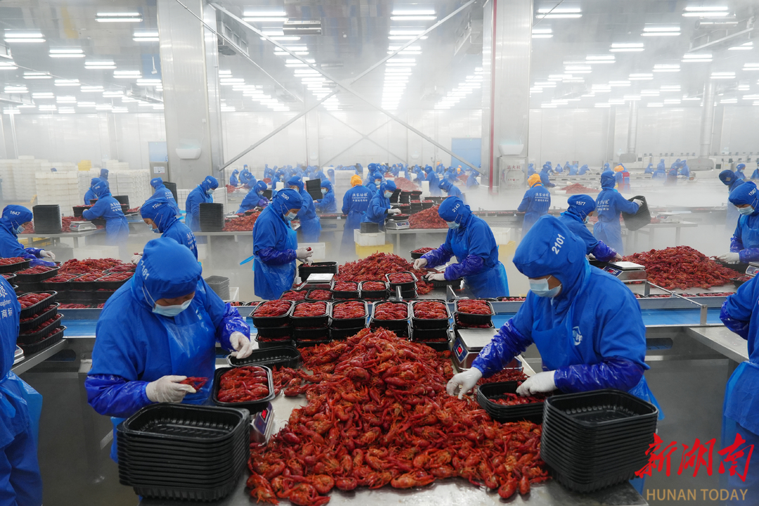 顺祥食品有限公司小龙虾加工车间。雷鸿涛 摄