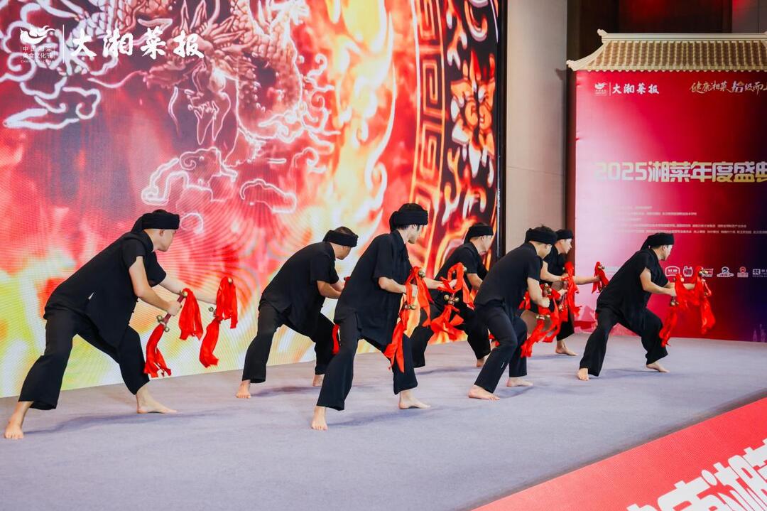 在湘菜年度盛典“健康湘菜”品鉴晚宴上,保靖县人民政府选送的《铜铃舞》作为唯一地方文化节目登上舞台,以“文旅+文化”的形式推广保靖品牌。舞者们身着民族服饰,随着清脆悦耳的铜铃声,在舞台中央起舞,将土家族古老神秘的文化魅力展现得淋漓尽致,瞬间点燃全场观众的热情。同时保靖黄金腊肉、保靖西湘季“黄金甲”点心等特色食材入选“健康湘菜”食材清单,成为品鉴晚宴的指定食材,赢得现场来宾一致好评。