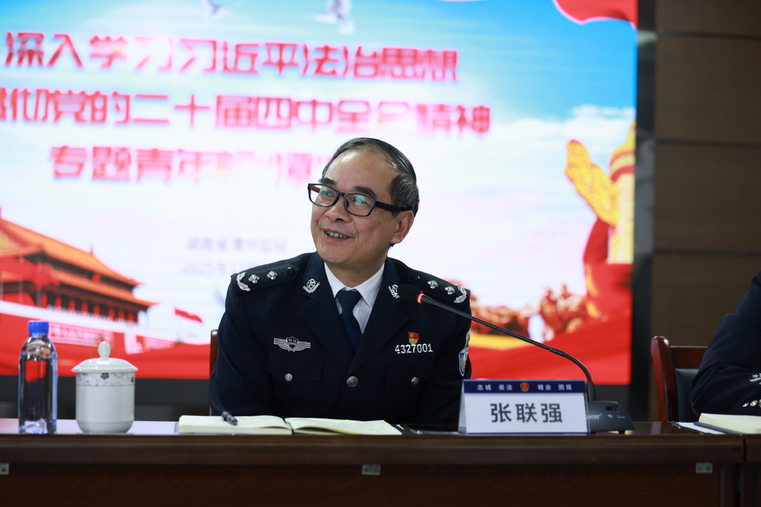 为深入学习贯彻习近平法治思想和党的二十届四中全会精神,结合湖南省司法厅“司享汇·司法行政大讲堂”安排部署,12月10日,湖南省潭州监狱举办“深入学习习近平法治思想,贯彻党的二十届四中全会精神”专题青年畅“潭”活动。监狱长张联强、政委周琦、副监狱长李志霞出席,40余名青年民警参加活动。