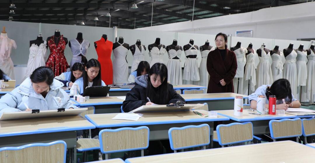 比赛现场,各赛项角逐激烈,精彩纷呈。选手们沉着冷静,将平日勤学苦练的技艺一一展现。在平面设计赛区,选手们在PS软件中逐层构建图像,精细调整构图与色彩,创作出视觉美感设计作品;服装零部件制作现场,选手严格依据纱向裁布,熟练操控缝纫机,精准完成拼接、缝合与整烫;而在汽车维修项目决赛现场气氛尤为热烈,24 名晋级选手在数百名师生围观下展开巅峰对决,拆装、检测、修理、更换,动作规范有序,尽显扎实功底。