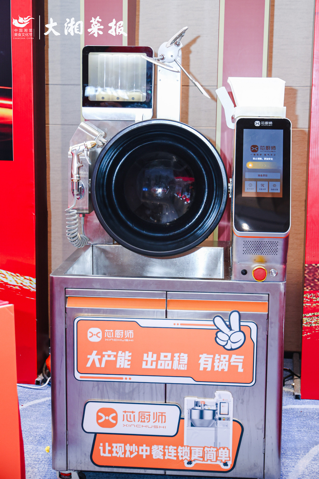 12月8日,在2025湘菜年度盛典的现场,美食展区人潮涌动,而芯厨师炒菜机器人的展位区尤为引人注目——这是湘菜盛典举办十届以来,首次出现AI炒菜机器人的身影。芯厨师X7以其“一键现炒,锅气不少”的实演效果,吸引了众多餐饮从业者、投资人与媒体驻足体验,大家都对这个将传统湘菜与现代科技完美融合的展位充满了好奇与期待。