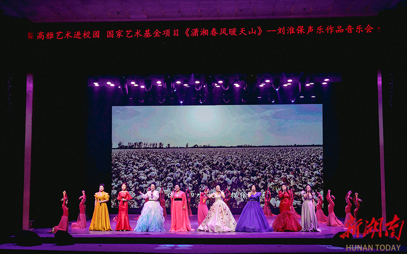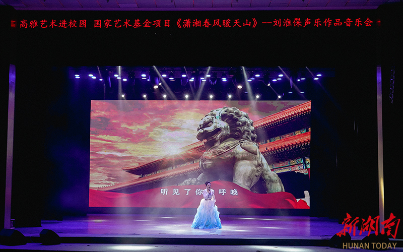 湖南日报·新湖南客户端12月12日讯(通讯员 匡泓锦 周晓岩 梁昭)弦歌不辍育新苗,艺韵悠长润校园。11月27日晚7时30分,怀化学院音乐舞蹈学院艺术教学实践基地(西区大礼堂)灯火璀璨、座无虚席,湖南省高雅艺术进校园活动 —— 国家艺术基金资助项目《潇湘春风暖天山》刘淮保作品音乐会在此隆重上演。怀化学院党委书记王刚,邵阳学院党委书记宁立伟,怀化学院党委委员、副校长周小李、刘建国,两校相关职能部门领导、师生代表及 2025 年湖南省 “青马工程” 高校班全体学员齐聚一堂,共同沉浸在这场融思想性与艺术性于一体的视听盛宴中。