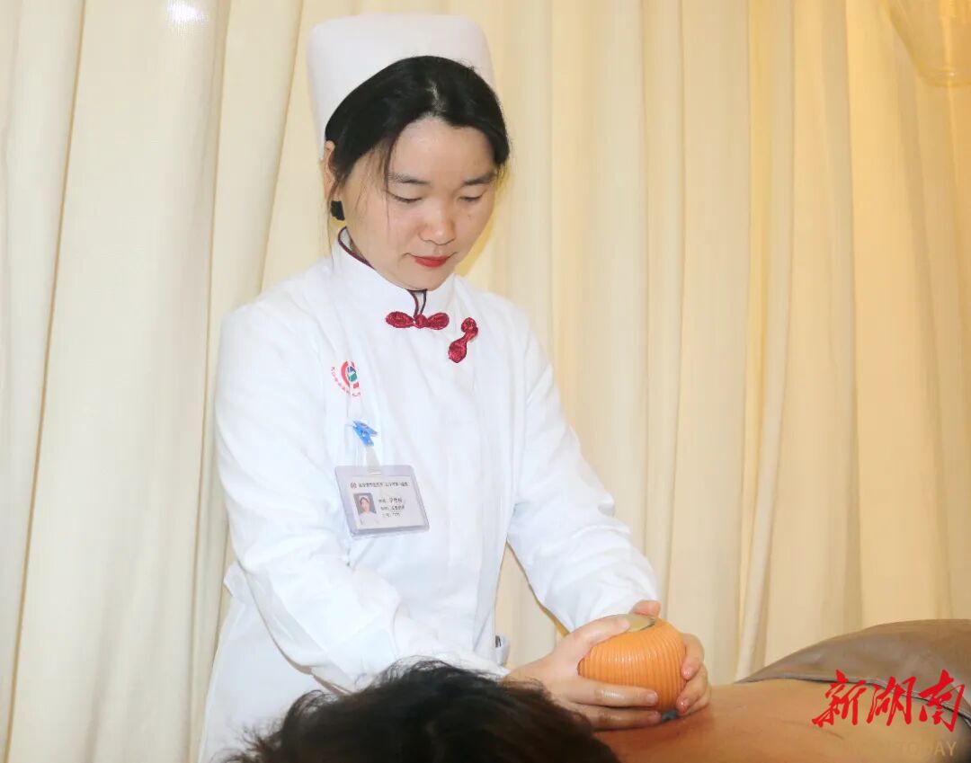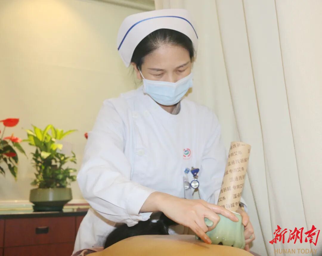 目前,全院中医护理门诊共设调理床位50张,开展棍针拨筋疗法、刘氏火熨术、火龙罐综合灸、虎符铜砭刮痧、面部美容罐、耳穴疗法、穴位贴敷、杵针、温阳罐、督脉灸、脐灸等40余项中医适宜技术,拥有全国中医护理人才3名、长沙市中医药“神农人才”20名、中医专科护士60余名,形成了一支专业扎实、经验丰富的中医护理团队。作为长沙市中医护理质量控制中心主委单位、长沙市中医护理联盟理事长单位,医院还建成多个中医护理项目培训示范基地,推动技术规范化发展与区域辐射,让优质护理资源惠及更多基层群众。