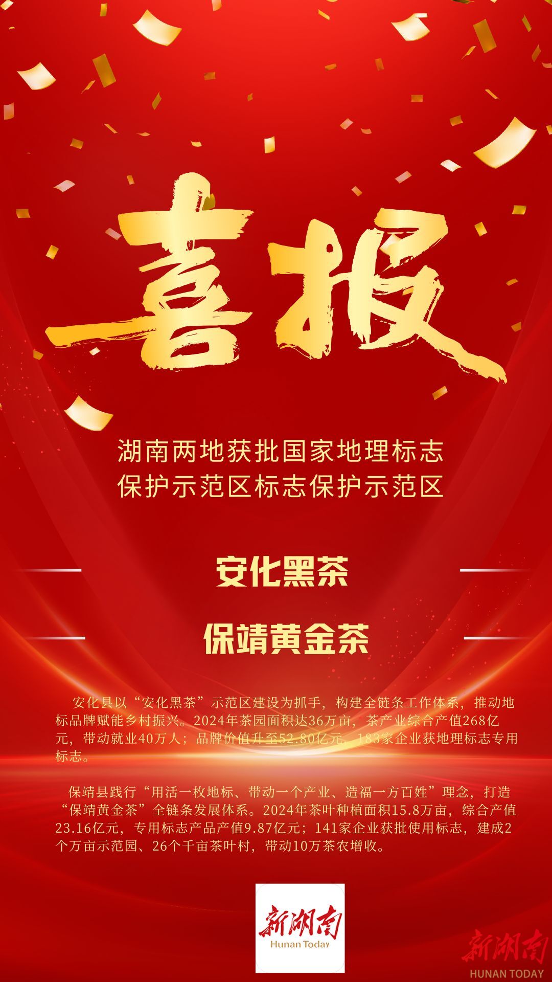 湖南日报·新湖南客户端12月17日讯(全媒体记者 李成辉 通讯员 姚彤)近日,国家知识产权局公布新一批国家地理标志保护示范区名单,我省“安化黑茶”“保靖黄金茶”示范区正式获批成立。这标志着我省在地理标志保护与特色产业融合发展方面取得重要突破,为乡村振兴注入了新的品牌动力。