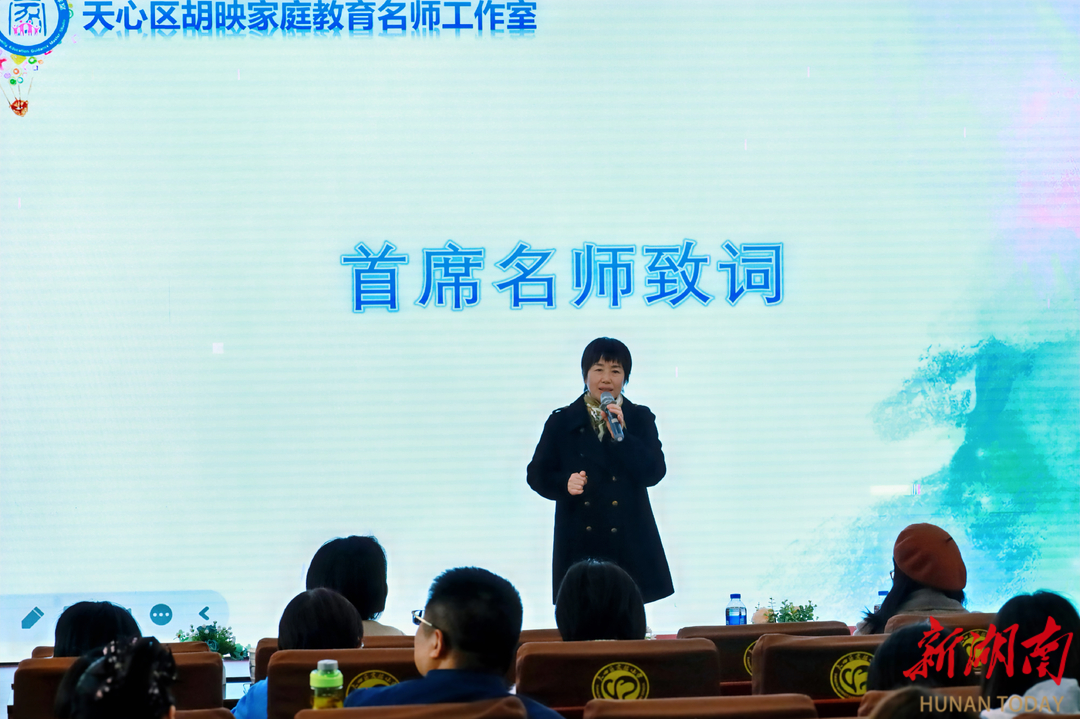 活动伊始,天心区实验小学党支部书记、胡映家庭教育名师工作室首席名师胡映发表开场致辞。她着重强调了家庭教育在学生成长过程中的基石作用,清晰阐明了本次研训活动的核心目标,为整场培训拉开了序幕。