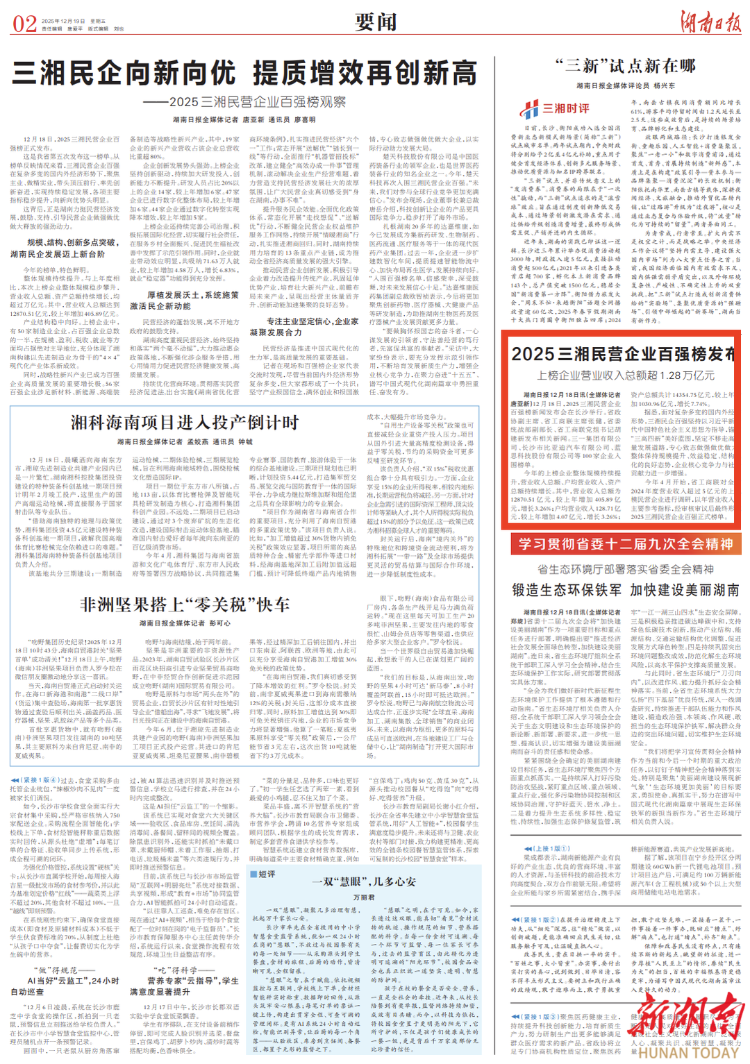 2025三湘民营企业百强榜发布 上榜企业营业收入总额超1.28万亿元