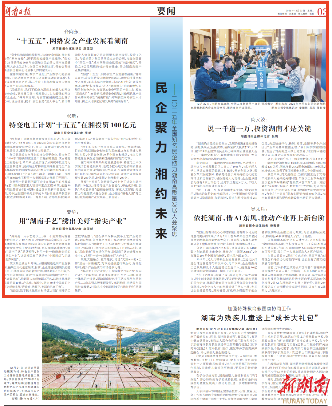 “特变电工是湖南高质量发展的见证者、亲历者和践行者。”12月22日,在2025年全国知名民企助力湖南高质量发展大会上,全国工商联副主席,特变电工党委书记、董事长张新发言时表示。