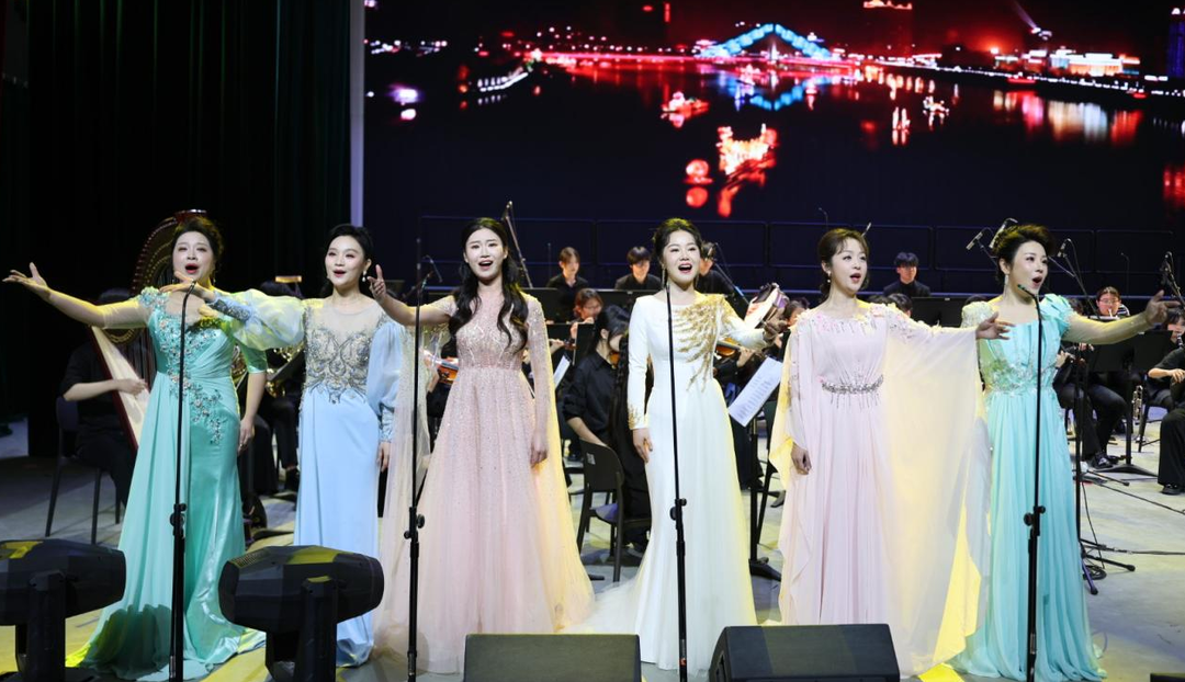 从开篇吕其明大气磅礴的《红旗颂》,到刘炽深情隽永的《我的祖国》,交响乐始终奏响着艺术最强音。雷振邦取材塔吉克族民间音乐的《冰山上的来客》组曲,与约翰·施特劳斯轻快的《埃及进行曲》形成东西方交响的精彩对话,充分展现交响乐的多元魅力。《爱永在》以四位男声磅礴演绎,《浏阳河》由女声小组婉转呈现,而《晋城往事》更将二胡、琵琶与舞蹈巧妙融合,彰显传统艺术在交响框架下的新生力量。本场音乐会在《歌唱祖国》的全场激昂合唱中推向高潮,澎湃的爱国情怀如浪潮般在厅内回荡,为这场艺术盛宴画下震撼人心的句点。