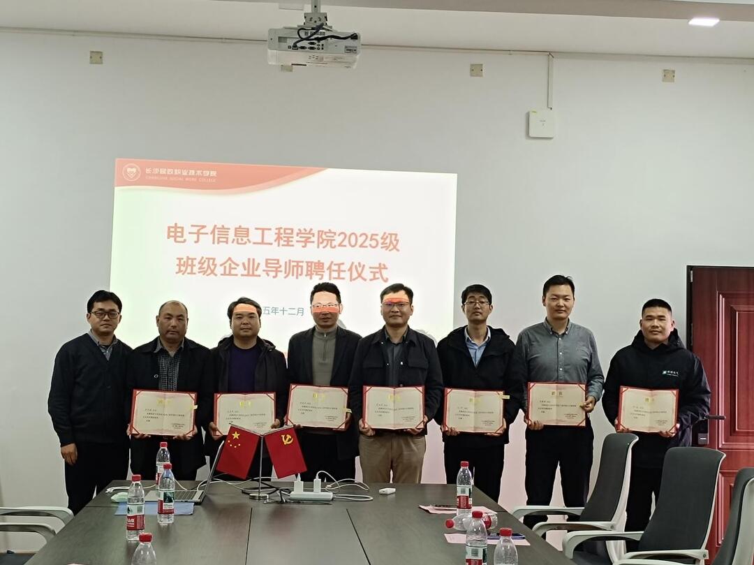 会议期间,电子信息工程学院举行了校友企业导师聘任仪式。吴文平为到场及线上导师逐一颁发聘书,并合影留念。他表示,聘任校友企业导师是学院深化校企协调育人的重要举措,希望班级导师与校内导师一起,从思想引领、成长引领、专业引领、创新引领、就业引领等4个方面参与学生培养,推动人才培养与市场需求无缝对接。未来长沙民政职院电子信息工程学院将持续推进企业导师制度,整合校友资源,为培养高素质技术技能人才注入新动能。