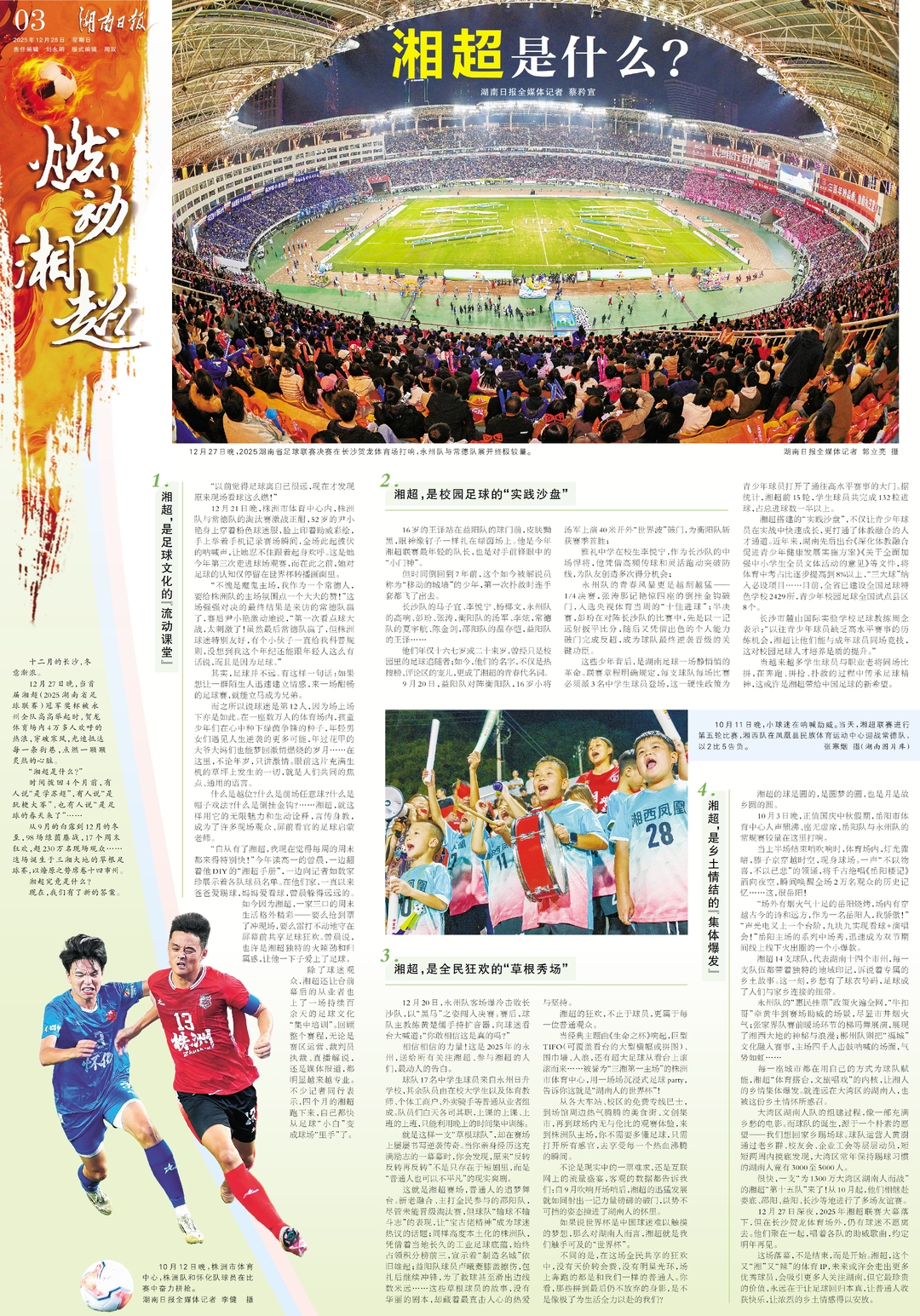 除了球迷观众,湘超还让台前幕后的从业者也上了一场持续百余天的足球文化“集中培训”。回顾整个赛程,无论是赛区运营、裁判员执裁、直播解说,还是媒体报道,都明显越来越专业。不少记者同行表示,四个月的湘超跑下来,自己都快从足球“小白”变成球场“里手”了。