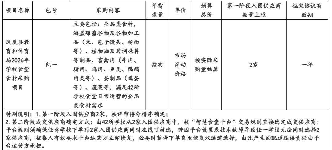 原链接:[公开招标]凤凰县教育和体育局2026年学校食堂食材采购项目框架协议征集公告[正在下载]