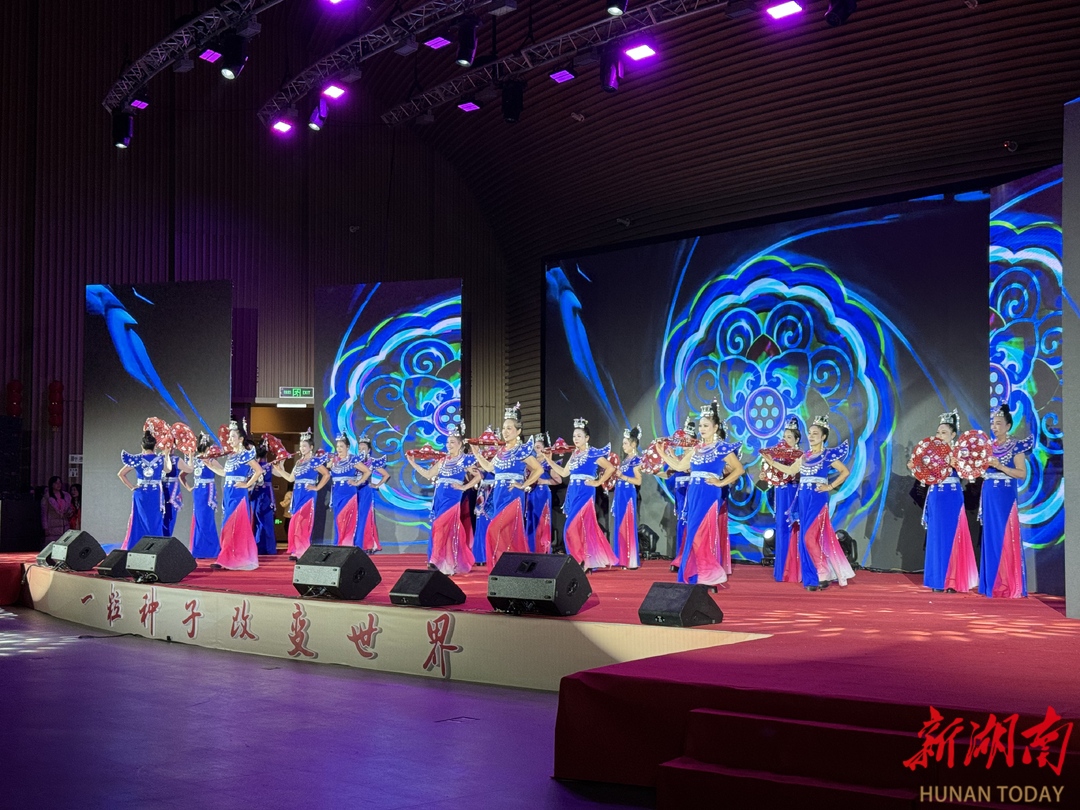 开场歌舞《让幸福飞起来》以激昂的旋律、灵动的舞步点燃全场热情,拉开新年联欢的序幕;原创歌舞剧《环卫交响曲》聚焦环卫工人的清晨与深夜,用艺术的笔触描摹城市美容师的默默坚守,致敬平凡岗位上的不凡奉献;《高庙春雨》深挖福地怀化的高庙文化底蕴,以曼妙舞姿勾勒雨润千山、情暖万家的动人图景;《银铃声声醉苗乡》则融入靖州苗绣、银饰等非遗元素,让湖湘少数民族文化的独特魅力在舞台上熠熠生辉。