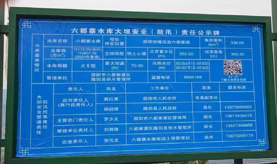 六都寨水库大坝安全责任人公示牌