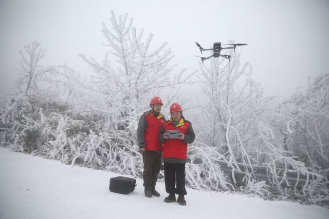 在安化县±800千伏中衡特高压线路监测现场,国网湖南超高压输电公司利用无人机巡航、北斗高精度形变监测等先进技术,实现对输电线路覆冰厚度与形态的精准实时感知,为科学开展融冰除冰决策提供了关键技术支撑。
