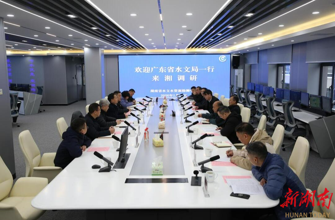 1月21日,广东省水文局党委书记、局长廖征红一行来湘调研,省水文中心党委书记、主任王炎荣陪同。