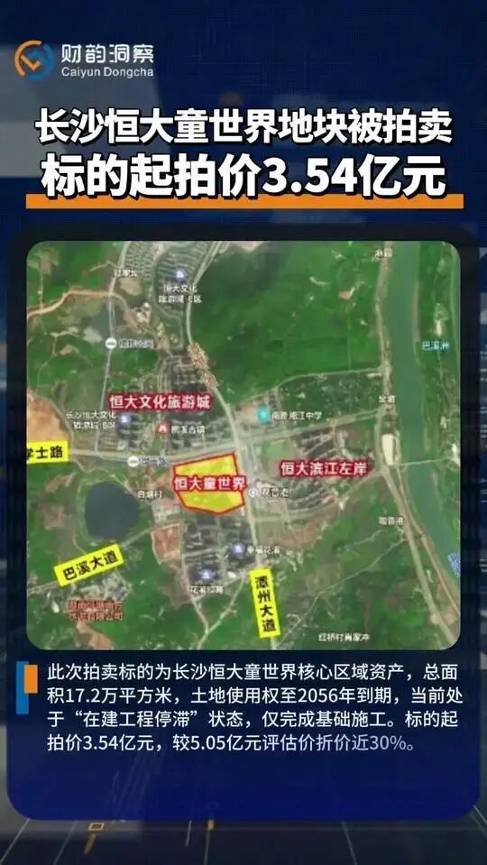 经过多方数年的谋划,2025年12月,“恒大童世界”项目终于迎来“新生”:经司法拍卖,湖南湘江新区悦景投资有限公司以2.83亿元的价格竞得三宗总面积约17.2万平方米的娱乐康体用地。