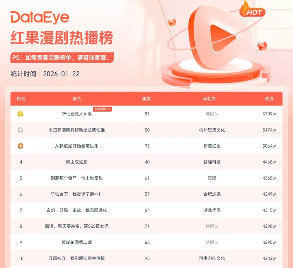 爱漫剧2026年AI漫剧生态产业大会将于1月27日举办,友和文化、稻谷文化、酱油文化、魔方集团等多家短剧头部公司的负责人,将围绕从真人到漫剧的降本突围、单月3000万的AI短剧盈利秘笈、AI+IP帝国的流量闭环等主题分享行业前沿逻辑。