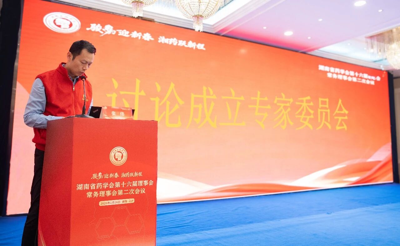 大众卫生报·新湖南客户端1月23日讯(通讯员 李津)2026年1月16日下午,湖南省药学会第十六届理事会常务理事会第二次会议在长沙圆满召开。会议系统总结了2025年度工作成果,广泛凝聚业界共识,为助推湖南药学事业与生物医药产业高质量发展汇聚智慧与力量。学会主要负责人、常务理事、各专业委员会主任委员、秘书,团体会员单位代表及监事会成员等近百人出席会议。会议由学会副理事长武昆主持。