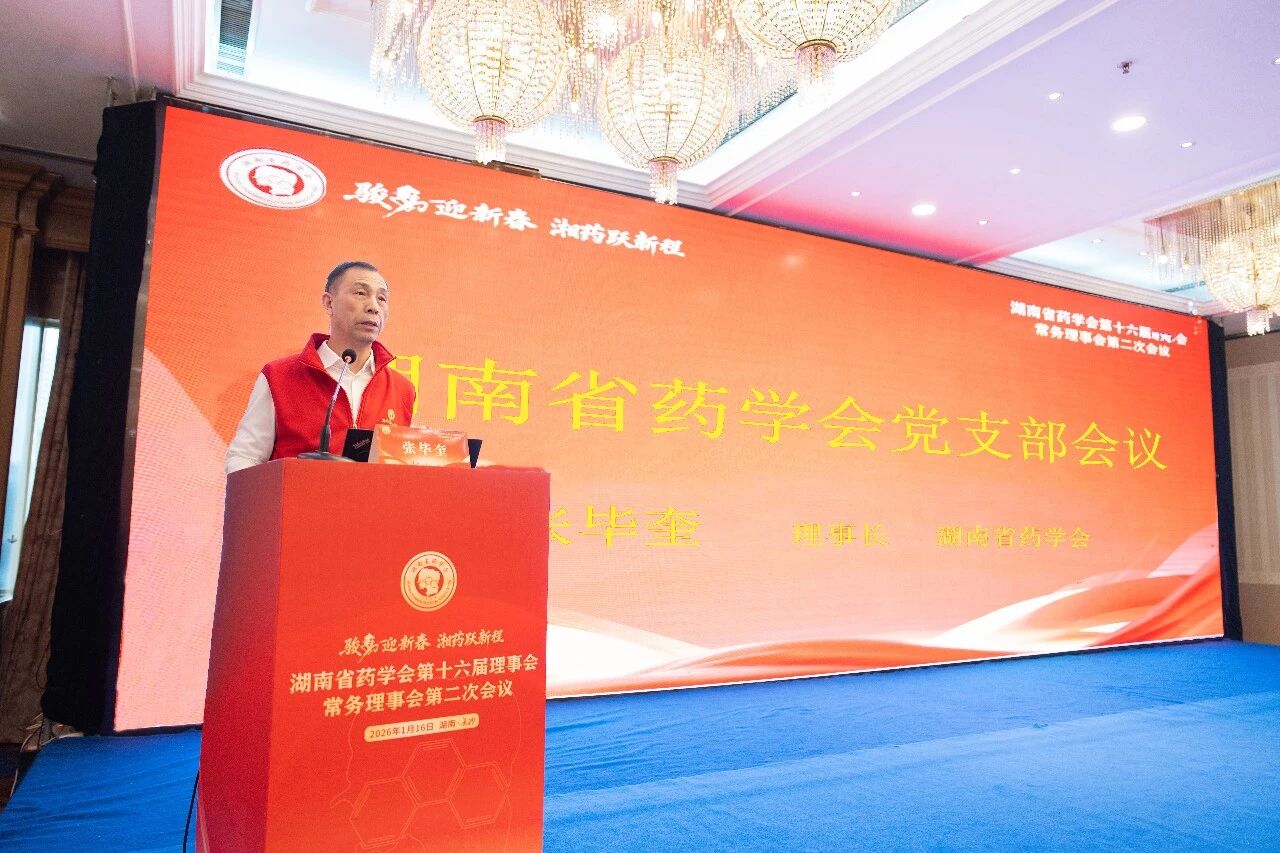 湖南省药学会名誉理事长李焕德参加会议并寄语。他对本次会议的务实高效给予充分肯定,并希望学会继续团结带领全省药学工作者,紧扣“凝聚药学智慧,助力健康湖南”的主线,积极应对医药卫生领域新挑战,牢牢把握科技发展新机遇。与会代表一致表示,将切实把会议精神转化为履职实效,以更高的站位、更实的举措,投身于药学科技创新与服务实践,深耕学术前沿、坚守民生底线,为保障人民群众用药安全有效、助力“健康湖南”战略实施贡献药学力量。