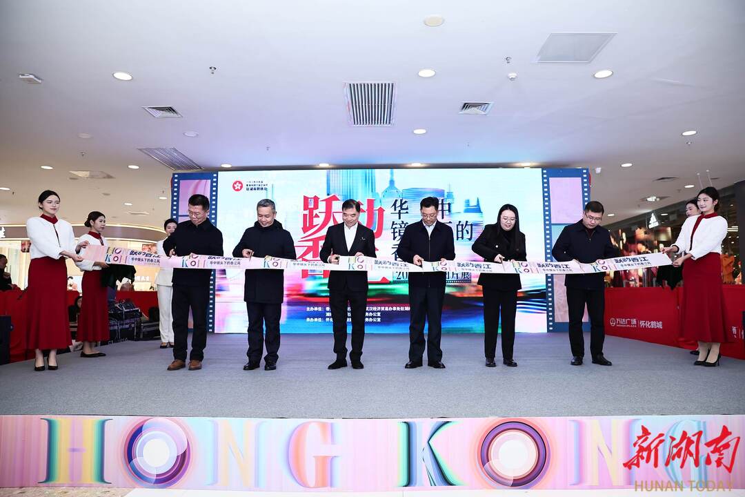 1月23日,“跃动香江 华中镜头下的香江风”2026香港图片展在怀化万达广场开幕。本次展览由香港特别行政区政府驻武汉经济贸易办事处驻湖南联络处、湖南省人民政府港澳事务办公室共同主办,怀化市人民政府港澳事务办公室承办。香港特别行政区政府驻武汉经济贸易办事处驻湖南联络处主任李锦雄,市委副书记、市委政法委书记贺遵庆出席开幕式并致辞。