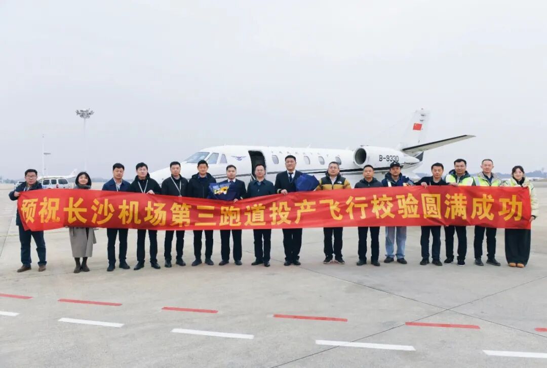 今日7时26分,来自中国民用航空飞行校验中心的赛斯纳560校验飞机,从长沙机场新建第三跑道上空划过,标志着第三跑道正式启动投产飞行校验,长沙机场改扩建工程建设取得关键进展,向2026年全面投运的目标奋力推进。