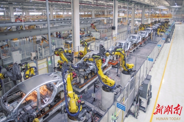 长沙比亚迪雨花基地焊装工厂,智能化生产线上的机械臂伸缩旋转,有条不紊地完成焊接工作。(资料图片)湖南日报全媒体记者 辜鹏博 摄