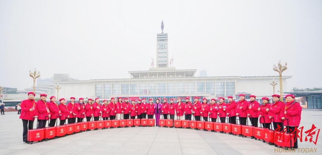 17日午饭过后,我和红友们依约从四面八方陆续来到长沙火车站西广场集合。赶到时,我看到广场上一群穿戴红衣红帽制服的姐妹在寒风里显得格外精神。我知道,这群红装姐妹有个好听的名字---星火姐姐,她们都是通过报社和长韶文旅公司组织几十场社区海选、晋级赛遴选及专门培训合格后留下的三十位才貌出众且自带光环的社区志愿者。中午1时左右,广场花坛旁突然传来欢快的琴声 ,一位小帅哥一边弹奏手风琴,一边走向红装人群,不一会,众人挥舞手中小红旗,齐声《歌唱祖国》,一场红歌快闪吸引众多旅客自发参与,嘹亮的歌声响彻火车站大广场,南来北往的乘客也忍不住停下匆忙的脚步驻足欣赏这道耀眼的红色风景。我被红歌感染,也忘我参与其中,红歌的力量似乎让人们充满力量,此刻虽是数九寒冬,心中却温暖如春。红歌快闪过后,数百红友一起通过安检登上期待已久的红友专列,开启两天一晚的情满韶山行。