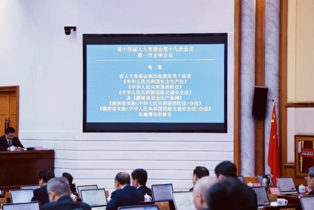 2025年11月25日,省十四届人大常委会第十九次会议第一次全体会议听取关于安全生产“三法一条例两办法”执法检查报告。袁超岚 摄