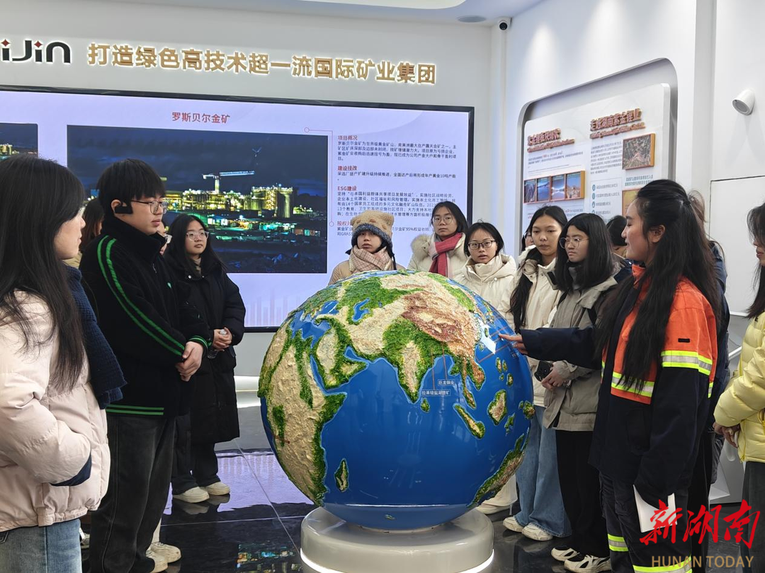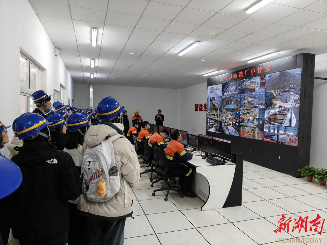 随后,大学生们分别在湖南紫金锂业有限公司和湖南紫金锂多金属新材料有限公司参观了湖南省十大产业项目之一:湘源锂多金属矿采选冶一体化项目。在企业展厅,同学们了解了这家矿业集团的全球布局与技术创新实力;步入中央控制室,屏幕的实时监测画面让大家直观感受到现代化智能生产的精准调控;在生产车间,大型设备的运行状态与工艺流程成为同学们现场观察的重点;乘坐巴士绕行矿区时,讲解员对矿石加工技术与绿色矿山建设理念的解说让同学们眼前一亮。参与观摩的陈同学表示,“本次参观,让我看到了道县近年来在交通、工业等基础设施层面的重大进步,也让我见识到道县优秀企业的蓬勃发展。”