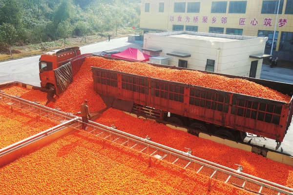 保靖鑫洋食品公司,卡车正在卸载脐橙。周雄 摄(湖南图片库)