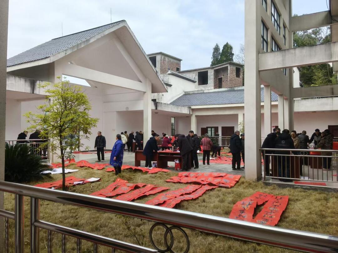 村委会活动室暖意融融、人头攒动,红宣铺案、墨香盈室,书法家们凝神运笔、笔走龙蛇,顿挫飞白间,一幅幅饱含时代气息与吉祥寓意的春联跃然纸上。孩童踮脚惊叹,老者驻足品评,村民按需点题,勤劳致富、家和安康的美好祈愿尽数凝于笔端,现场喝彩声、欢笑声交织,年味儿十足。本次活动累计送出原创春联、福字500余副,让传统笔墨文化扎根乡间。