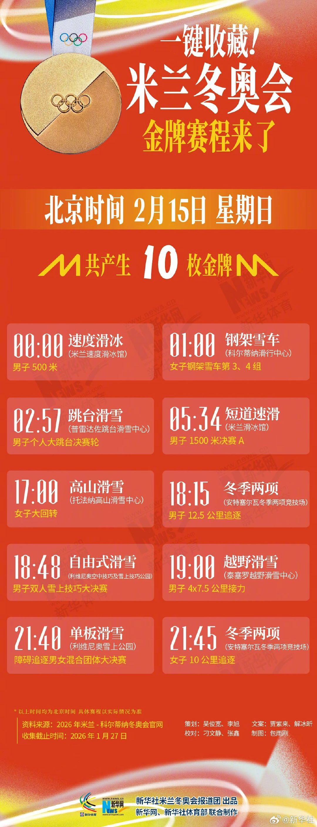 今年过年又能看冬奥了!米兰冬奥会北京时间2月7日开幕,转存收藏米兰冬奥会金牌赛程↓↓你最想看哪场比赛?