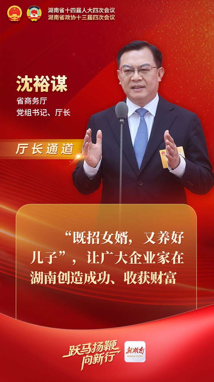 以环境优化壮大开放主体。持续开展“投资湖南”、“购在湖南”、“出口湖南”等品牌活动,“既招女婿,又养好儿子”。沈裕谋说,“‘招女婿’,就是我们要先引进一些国际、国内的企业到湖南来投资兴业;‘养好儿子’,就是存量的企业怎么支持它扩大再生产,两条腿走路,让广大企业家在湖南能够创造成功、收获财富。”