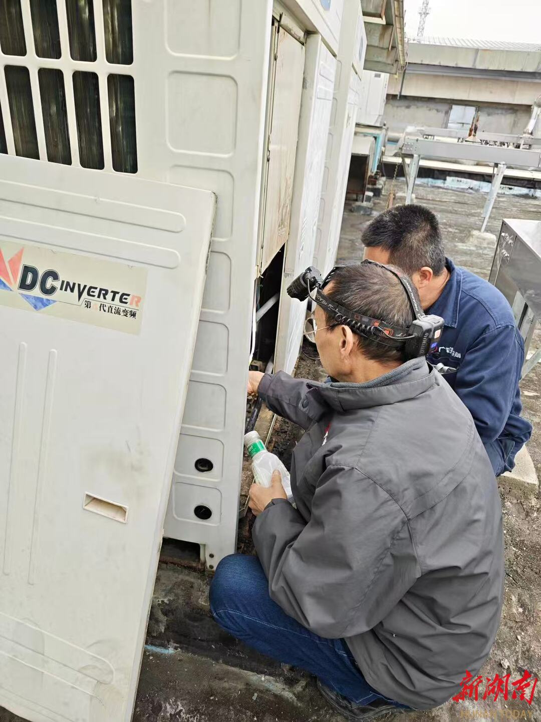 维修骨干邓虹阳、刘月民率先扛起室外排查的重任,两人顶着寒风一步步爬上站房顶部,到达空调外机区域,对压缩机及沿线管道进行逐段检查。冰冷的紫铜管道沾上手就冻得发麻,他俩却丝毫不在意,用检漏仪仔细检测每一个接口、焊缝,生怕错过任何一个细微漏点。