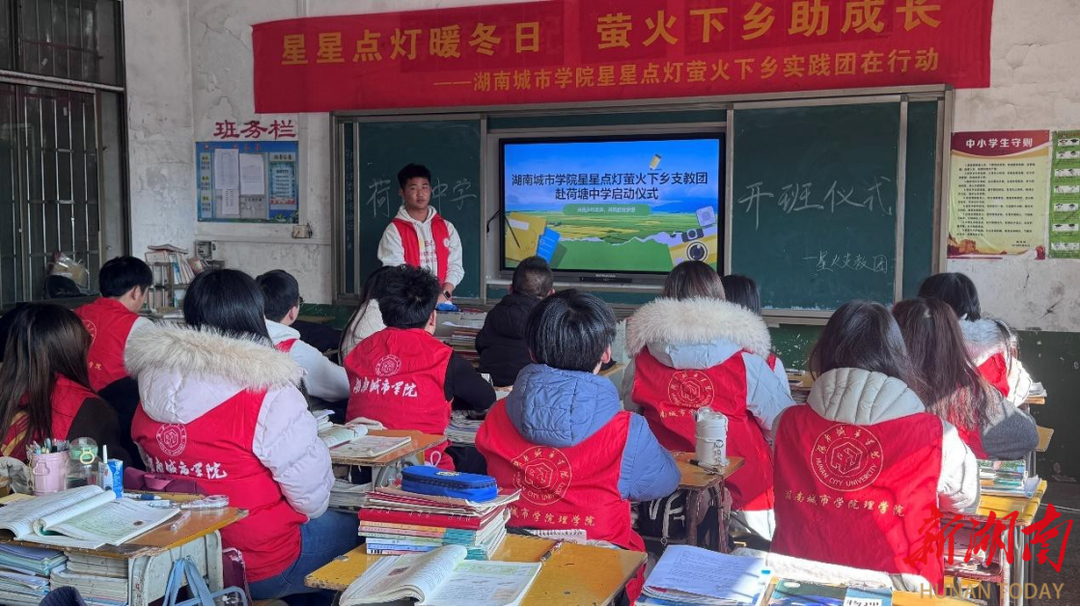 2026年1月15日至22日,湖南城市学院理学院“星星点灯萤火下乡支教团”的16名成员奔赴益阳市桃江县,在浮邱山乡荷塘中学及石牛江镇双鹅组开展为期7天的寒假志愿服务活动。活动以“振兴教育,砥砺前行”为宗旨,通过多元课程教学、留守儿童家访、心理疏导等多种形式,为当地200余名学生送去知识滋养与温情陪伴,用青春力量助力乡村儿童全面成长。