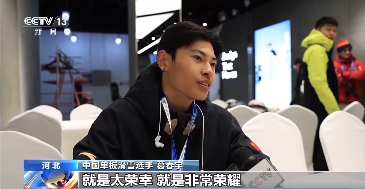中国单板滑雪选手 葛春宇:我觉得我作为运动员,能参加米兰奥运会就是太荣幸,就是非常荣耀,所以我就给自己定下目标,我就开始努力地去练习,练习就是训练,再去创新动作。