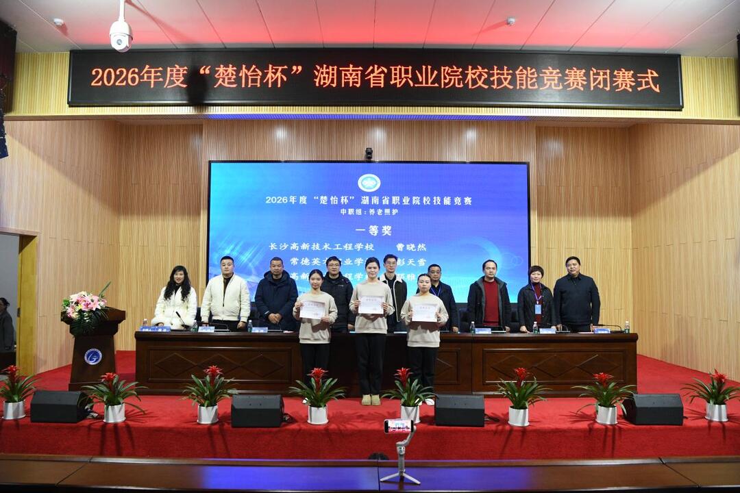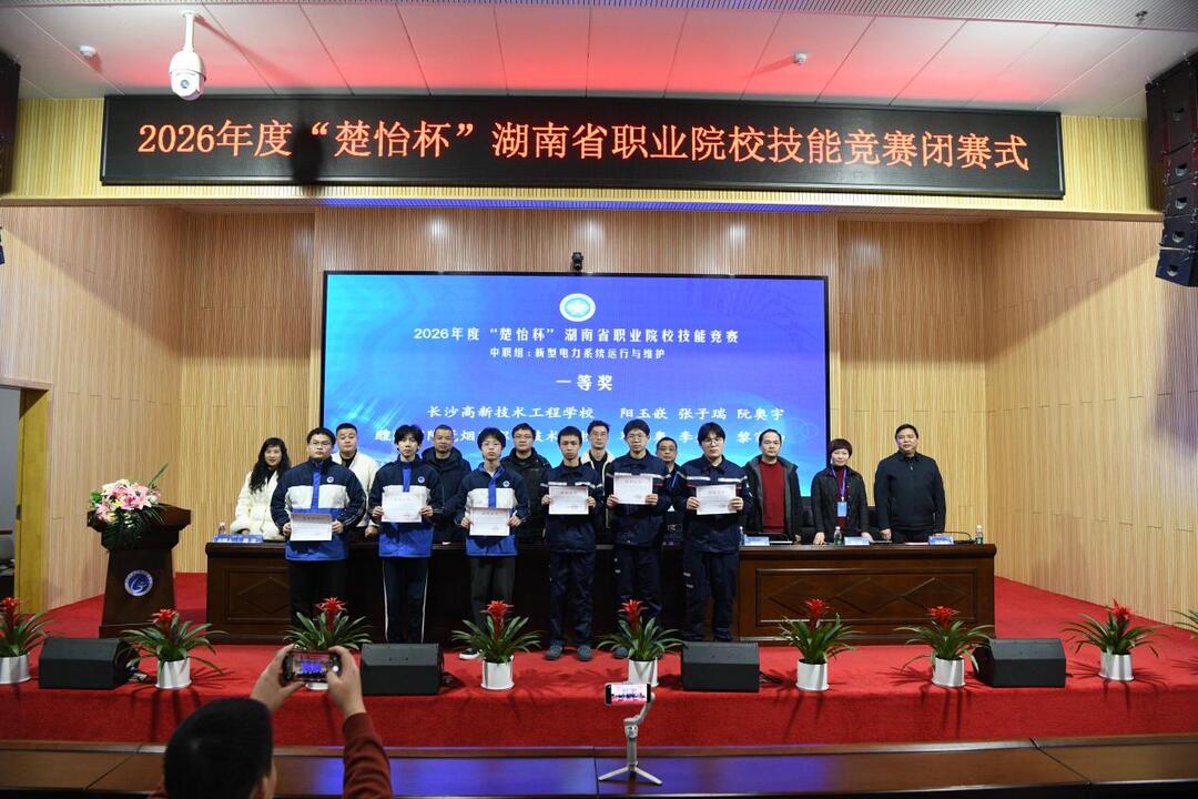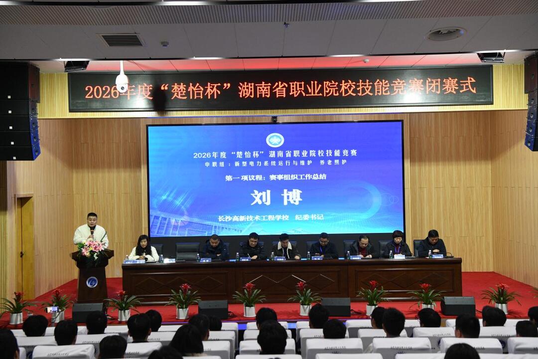 2月4日,2026年度“楚怡杯”湖南省职业院校技能竞赛中职组“新型电力系统运行与维护”与“养老照护”赛项,在长沙高新技术工程学校顺利闭幕。经过三天的激烈角逐,来自全省各地的职业院校选手圆满完成各项赛程,展现出新时代职教学子的精湛技艺与青春风采。湖南湘江新区教育局党组成员、长沙高新技术工程学校党委书记伍秋阳宣布赛事闭幕。
