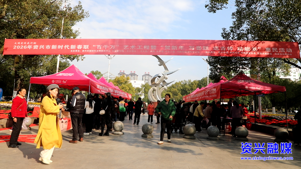 2月4日,资兴市2026年新时代新春联“百千万”艺术工程暨“贺新年、写春联、送吉祥、助旅发”惠民活动在人民广场温情启幕。10余名市书法家协会的会员挥毫泼墨,为广大市民送上了一份份饱含温度的“文化年货”,让年味在墨香中愈发浓郁。